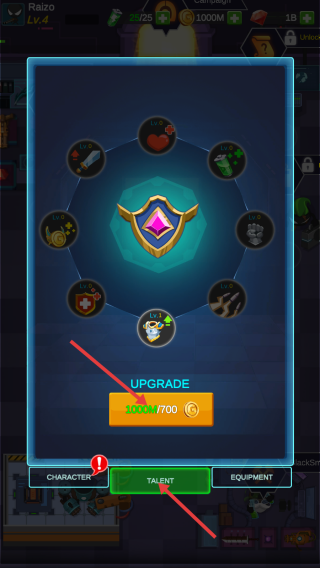 4、进入【TALENT】界面,消耗资源升级天赋,增强角色战斗能力。