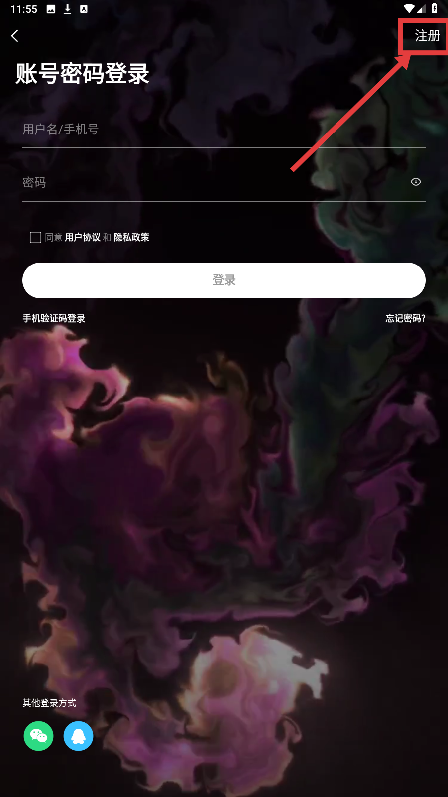 2、进入登录页面,点击右上角【注册】。