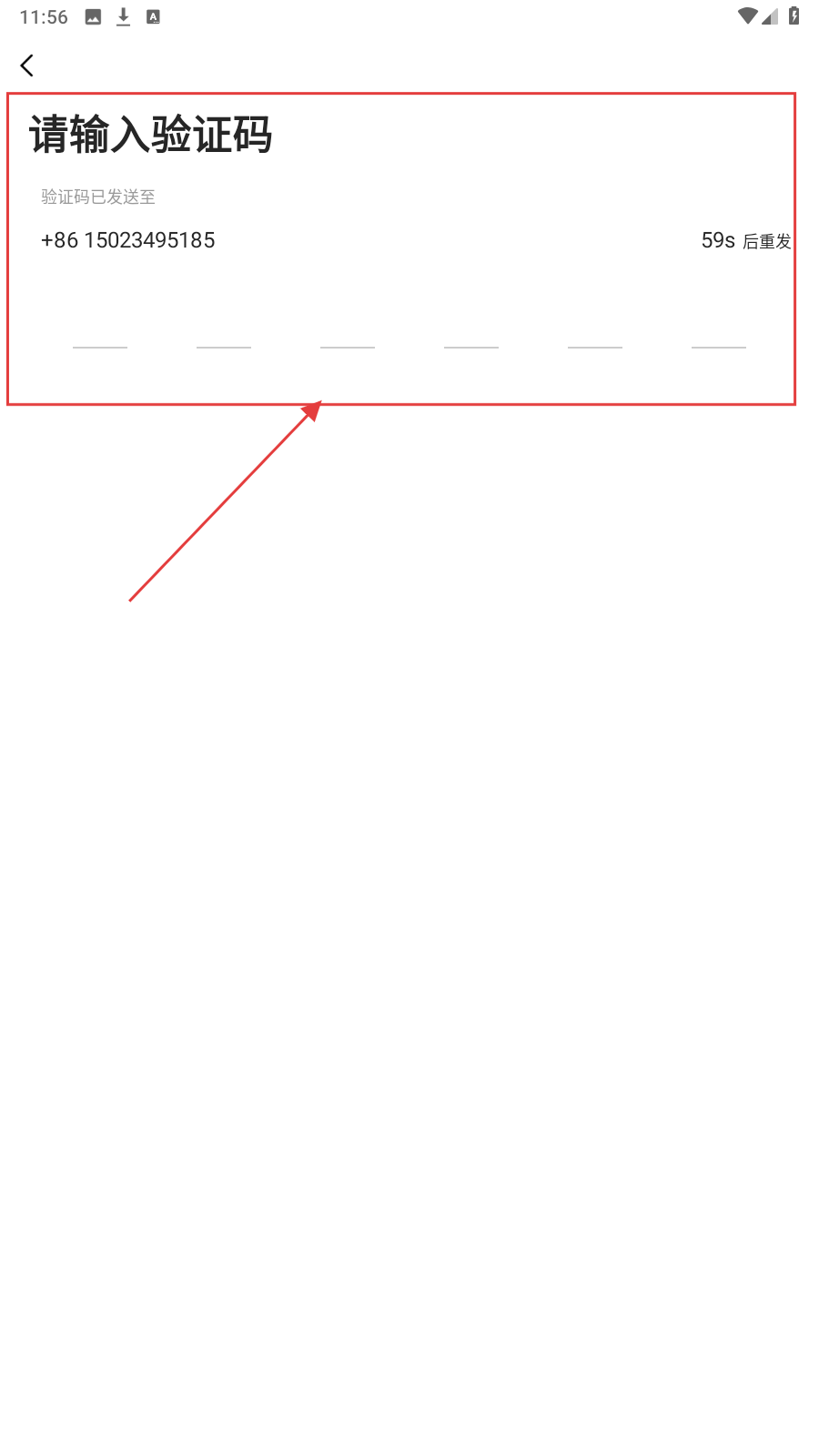 4、进入验证码输入页面,在输入框中输入收到的验证码,即可完成注册。