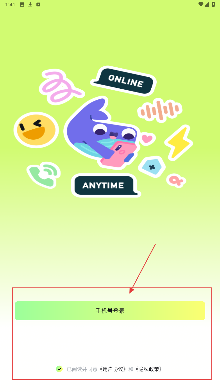 1、打开APP,进入登录页面,这里有【手机号登录】选项,勾选【已阅读并同意《用户协议》和《隐私政策》】,点击【手机号登录】。