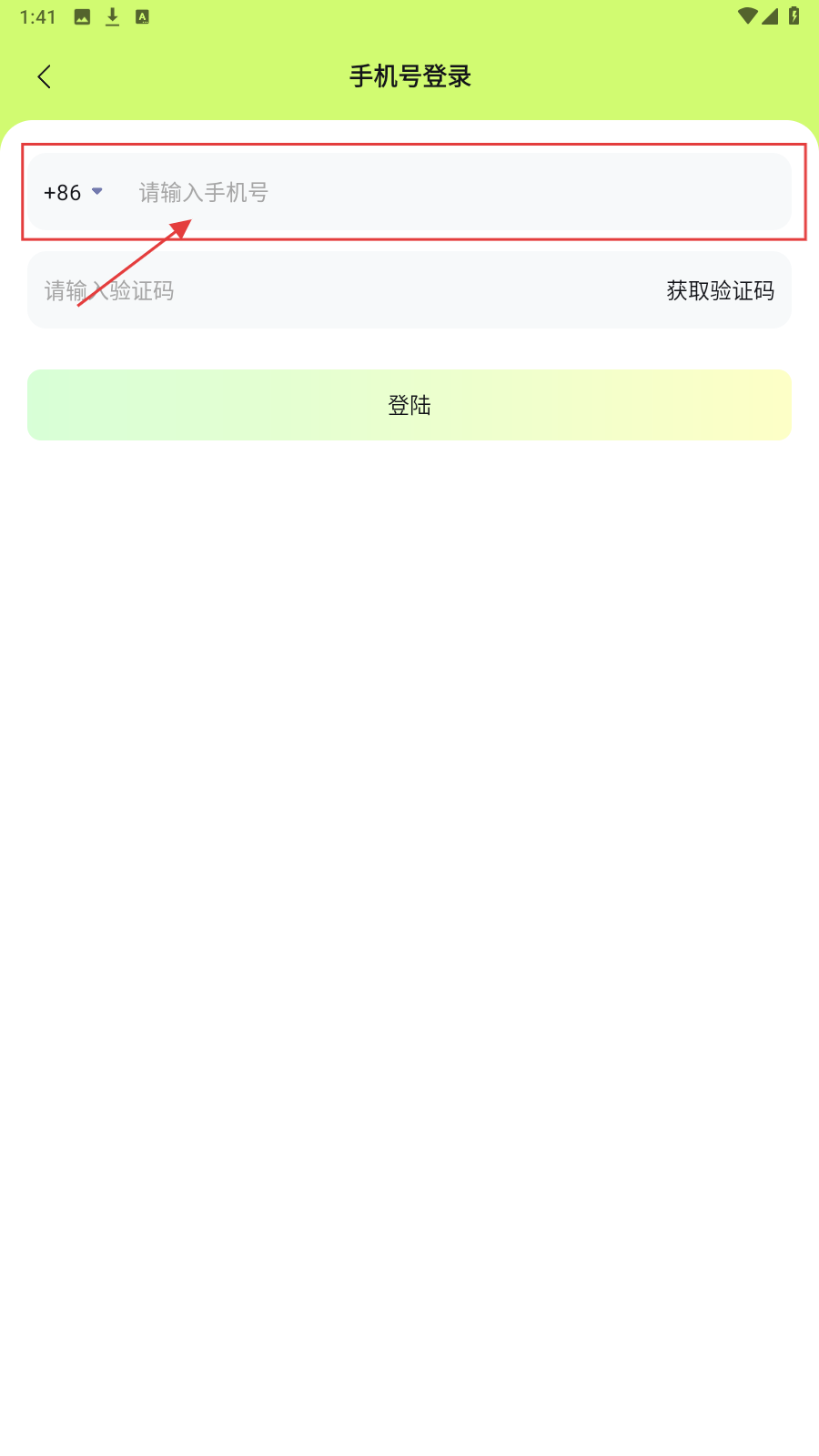 2、进入手机号登录页面,在输入框中输入手机号码。