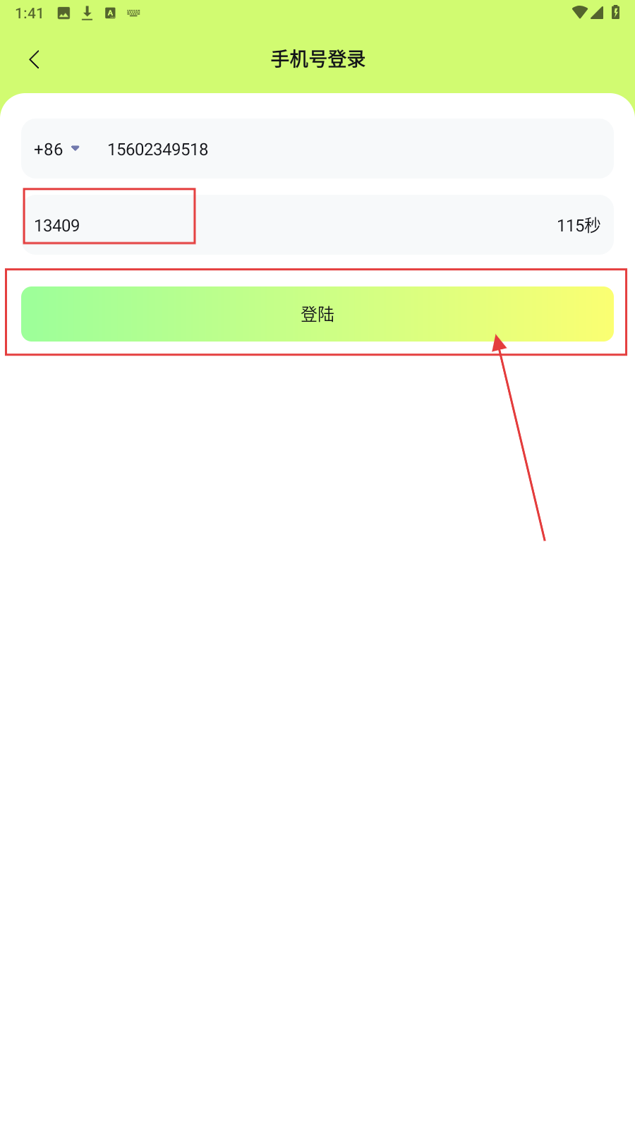 4、收到验证码后,在输入框中输入验证码,点击【登陆】,即可完成登录。
