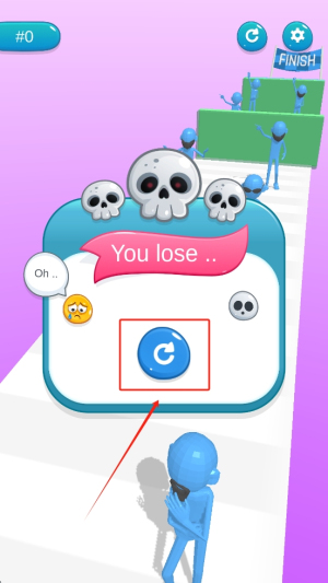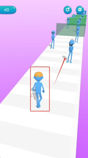 1、操控橡皮人行动:进入游戏后,通过滑动屏幕操控蓝色橡皮人团队移动,调整方向朝着墙壁前进,让团队保持整齐的队形。