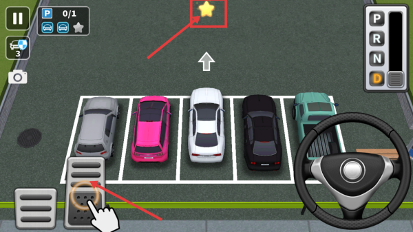 1、游戏中通过点击操作,按屏幕箭头指示方向移动车辆,合理规划移动路径,避免碰撞。