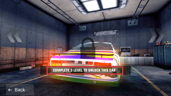 2、部分车辆需达成特定条件解锁,如【COMPLETE3LEVELTOUNLOCKTHISCAR】提示需完成3个关卡才能解锁对应车辆。