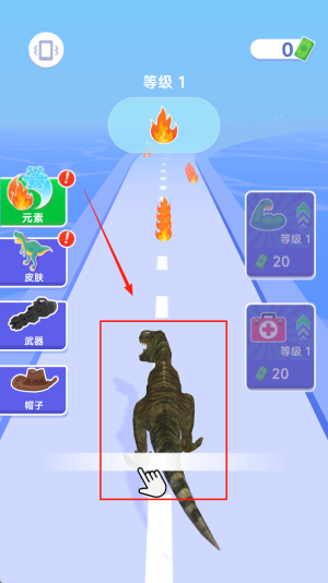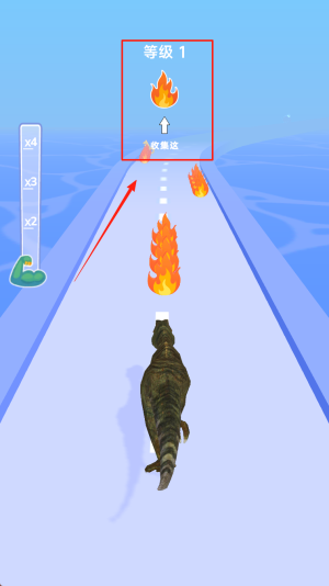 3、收集道具:控制恐龙奔跑,收集路上的道具以提升能力和等级。