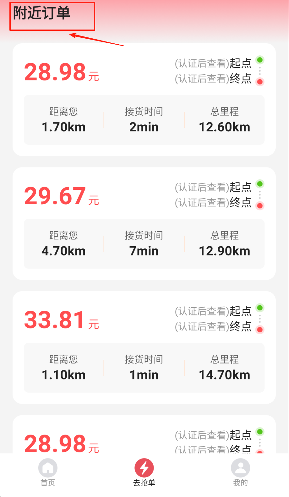 2、订单页筛选合适货源,查看货物详情,计算运输收益,一键抢单快速接单啦。