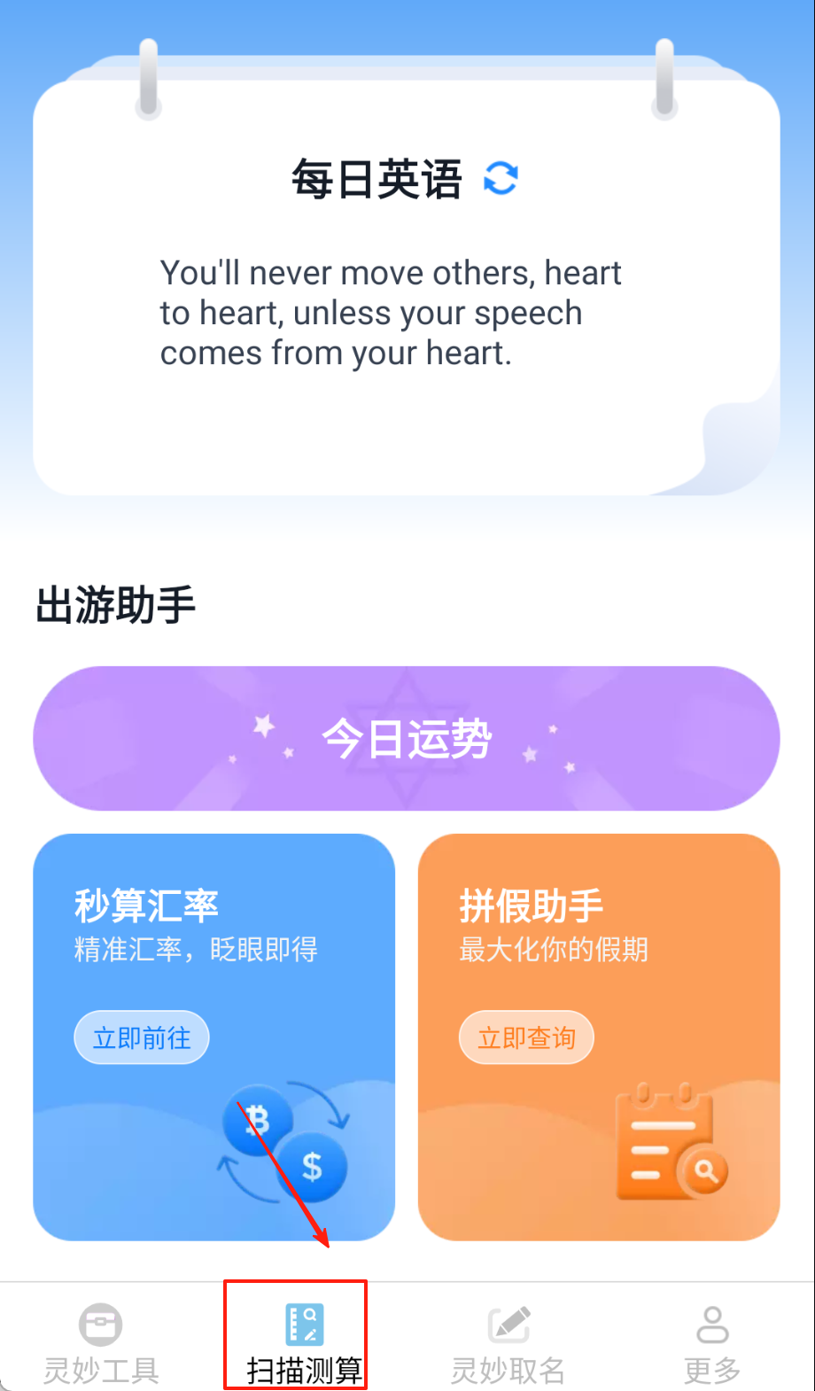 灵妙扫识王深度融合实用工具与智能识别功能,支持0.3秒响应99%操作指令,集成30+生活工具,测量精度误差<0.1%,识别准确率98%,取名生成匹配度95%的随身百宝箱呀。