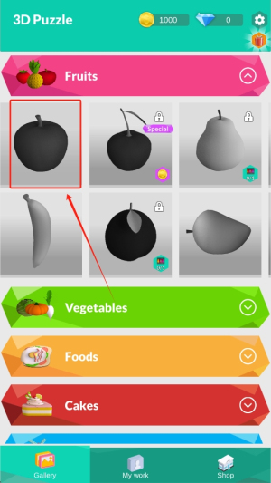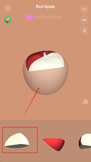 3、开始拼图:点击选择具体的拼图模型,如“Red Apple”,开始拼图。