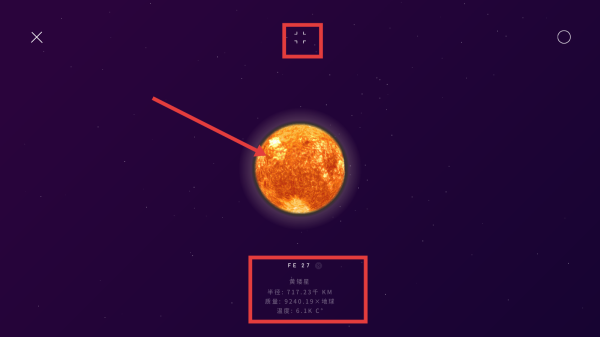 2、科研探索流程:点击天体获取核心构成与温度信息列表。观测碰撞数据研究物理规律拓展认知。