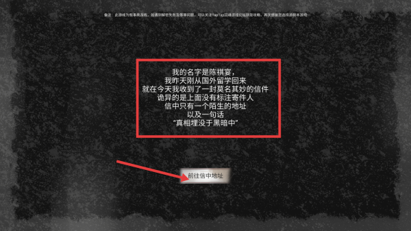 1、扮演【陈祺宴】,根据收到无寄件人信件及“真相埋没于黑暗中”线索,前往信中地址开启剧情。