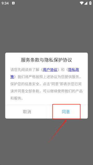 1、同意服务条款:阅读并同意服务条款与隐私保护协议,点击“同意”继续。