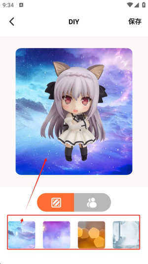 3、编辑头像:在DIY页面选择背景和其他装饰,编辑你的头像。