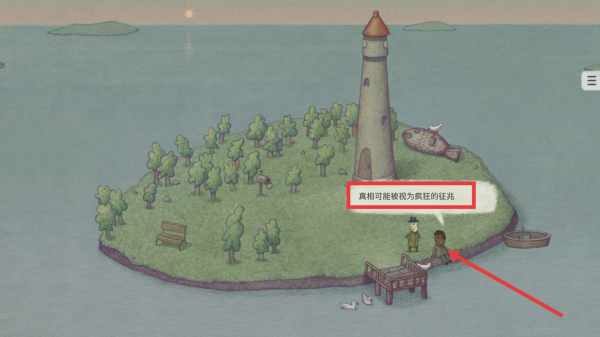 3、与岛上人物交流,留意如“真相可能被视为疯狂的征兆”话语,分析其中隐藏线索,推进剧情。