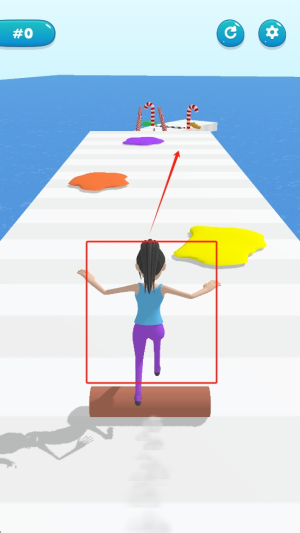 1、进入游戏后,操控小姐姐踏上滚筒,通过调整方向和力度保持平衡,开始在关卡中向前滚动,开启跑酷闯关。
