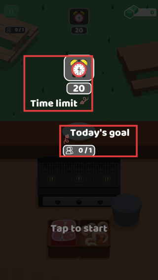 1、注意屏幕提示,了解【Timelimit】为20秒,且【Today'sgoal】是服务1位顾客,合理规划时间。