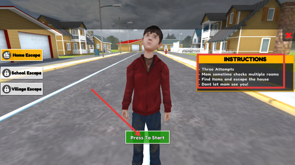 1、选择【HomeEscape】等模式后点击【PressToStart】进入游戏,了解“ThreeAttempts”等规则。