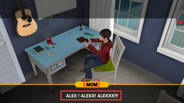 3、通过移动按钮操控角色探索房间,如点击翻开书本等物品,避免被妈妈发现没在学习。
