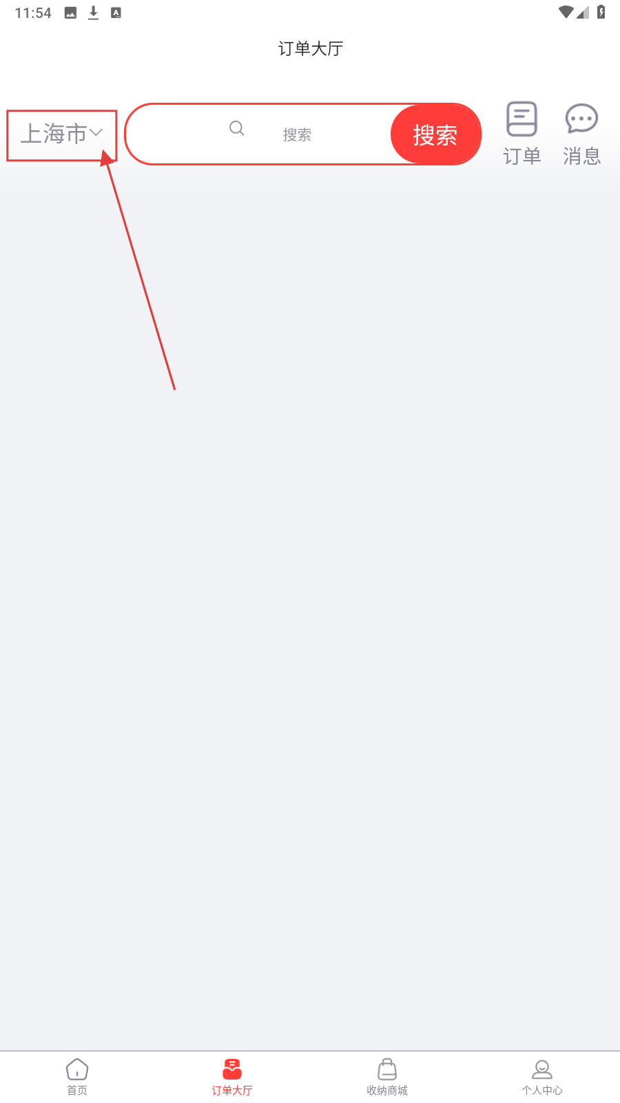 3、进入【订单大厅】页面,点击左上角的【上海市】。