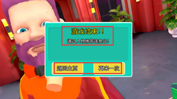 4、若因失误导致携带违禁品的人物通过,可选择【再来一次】重新挑战,或点击【返回主页】回到主界面。