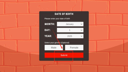1、输入信息:在游戏开始前,输入您的出生日期和选择性别,然后点击“Submit”提交信息。