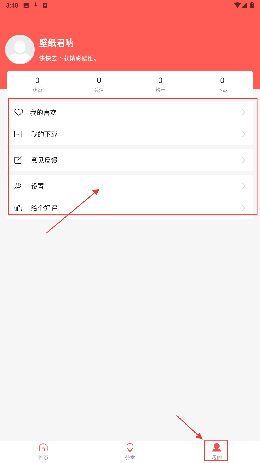 4、点【我的喜欢】,能切换【壁纸】【头像】标签,查看收藏内容。