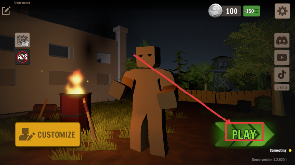 1、点击【PLAY】进入游戏模式选择界面。屏幕上方显示的“100”可能是某种资源点数,“+150”是奖励获取提示,可留意资源变化情况。