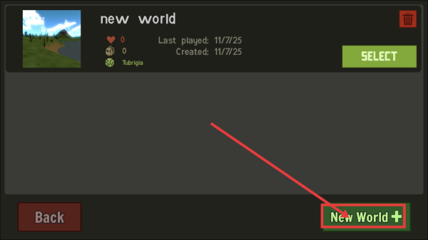 3、进入存档选择界面,若想继续之前的游戏,点击已有存档旁的【SELECT】,若要开启新游戏,点击【NewWorld+】。