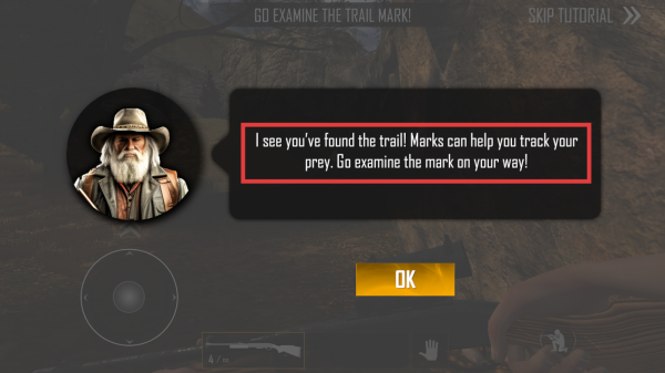 3、遇到提示,按指引去检查痕迹标记,这些标记可帮助追踪猎物。与非玩家角色交流获取任务提示。