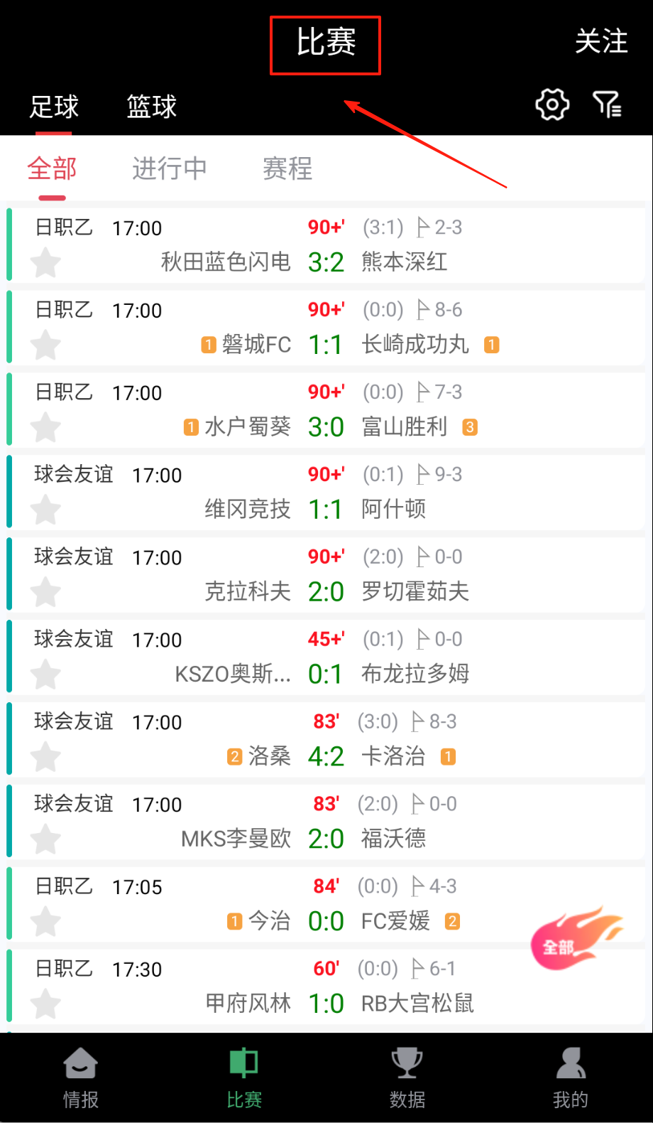 1、首页点"热门赛事"选择比赛类型,红点标注焦点赛事,设置关注提醒,开启实时追踪哦。