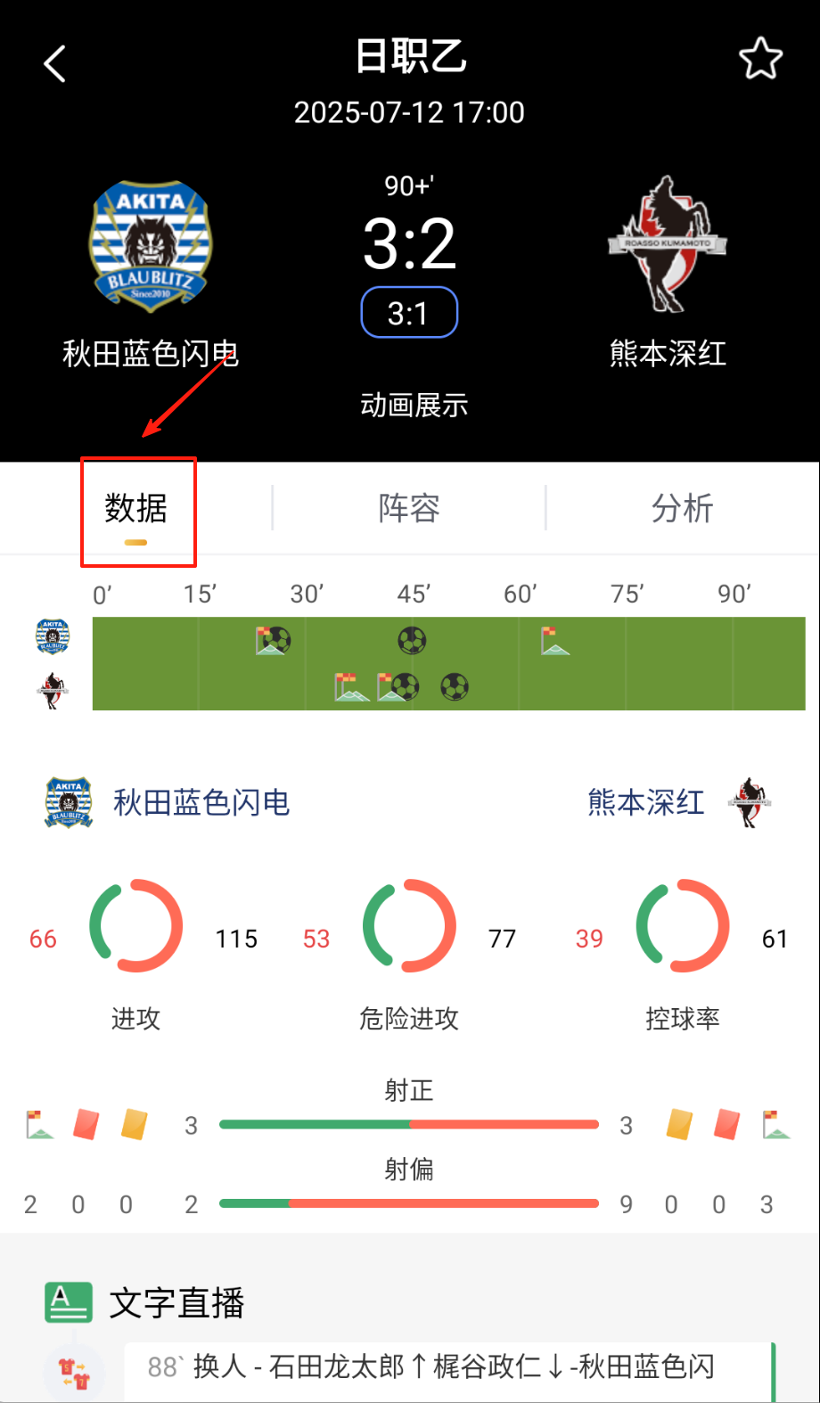 2、赛事页查看详细数据统计,对比球队历史交锋,收藏精彩对决,分析胜负概率啦。