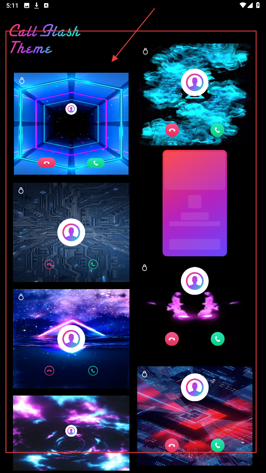 1、在主题列表选喜欢的炫酷来电主题(如霓虹隧道、赛博烟雾)。
