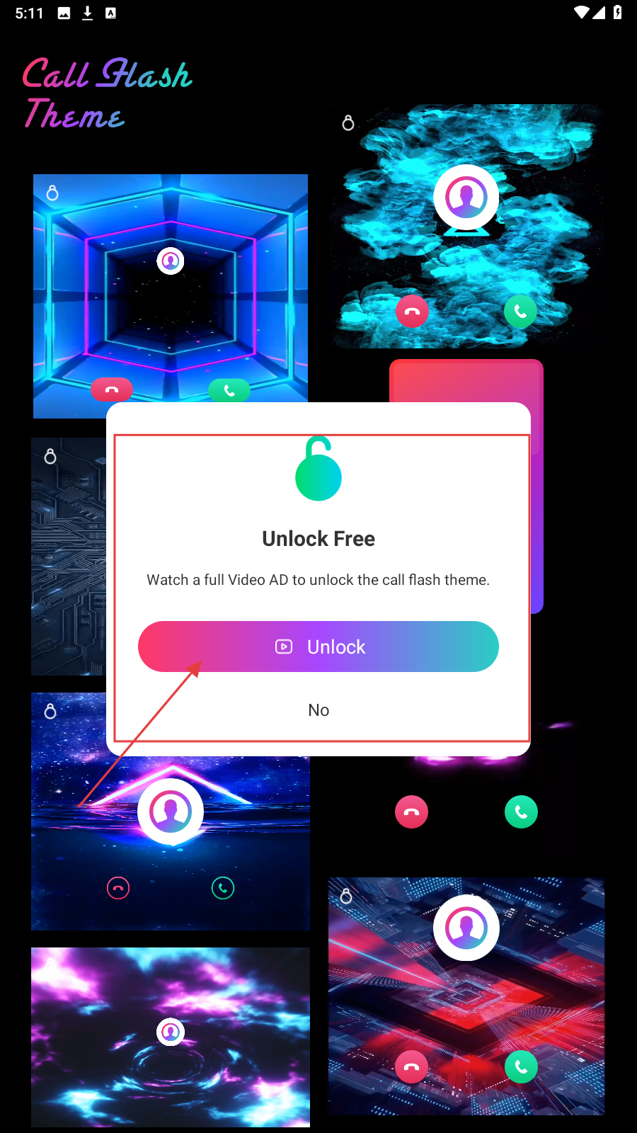 2、遇锁定主题,点【Unlock】看广告解锁。