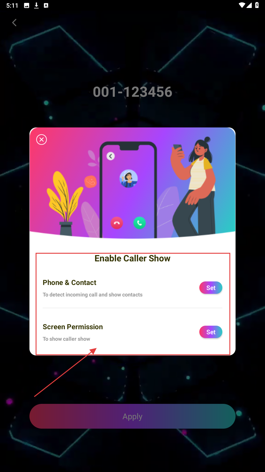 4、按提示设【ScreenPermission(显示来电秀)】等权限,完成生效。