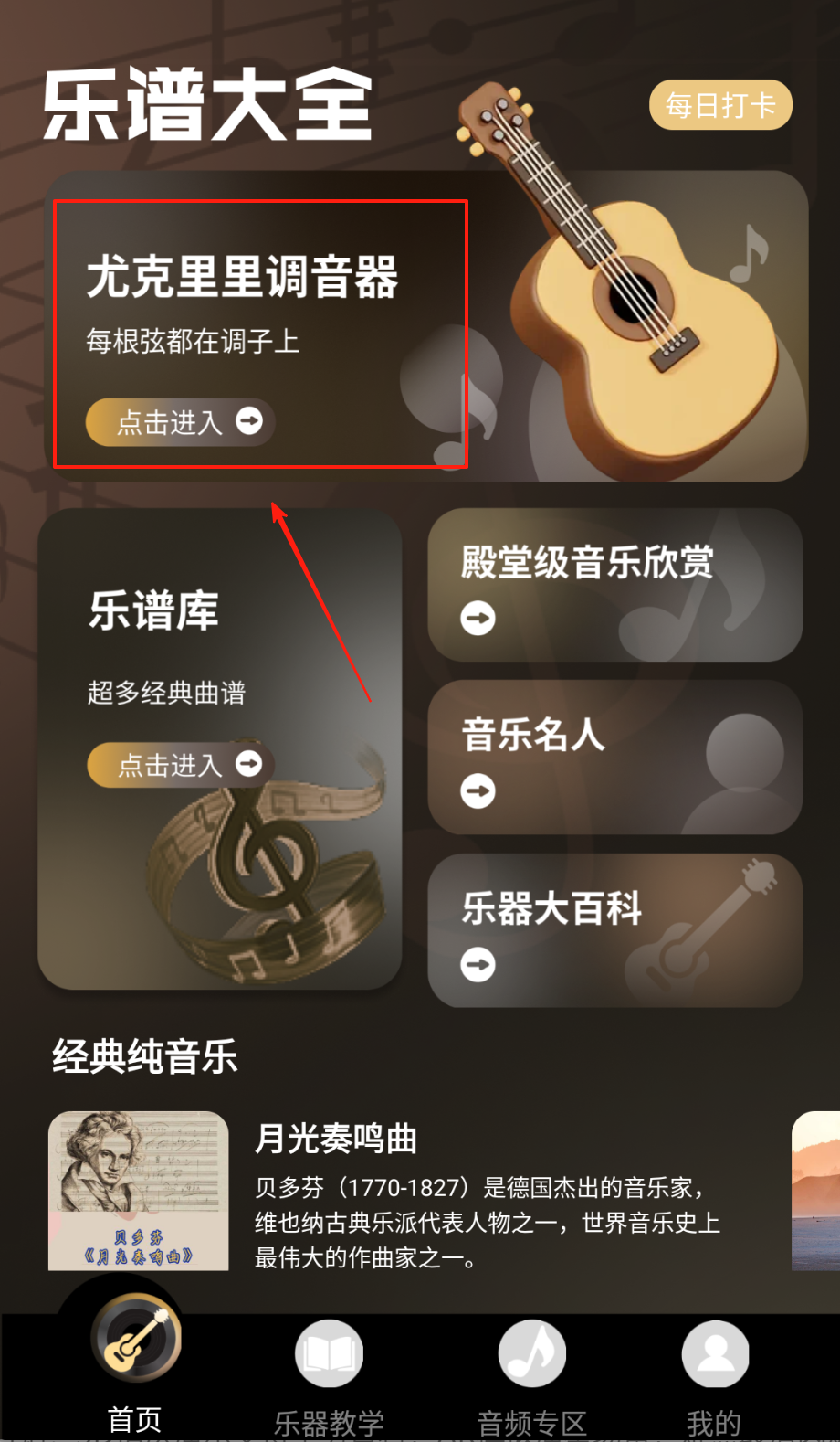 尤克里里曲谱大全深度融合乐器学习与智能练习功能,支持0.2秒响应99%演奏请求,覆盖1000+经典曲谱资源,调音准确率100%,演奏评分延迟<0.3秒,曲谱更新及时率98%的专业学习工具呀。