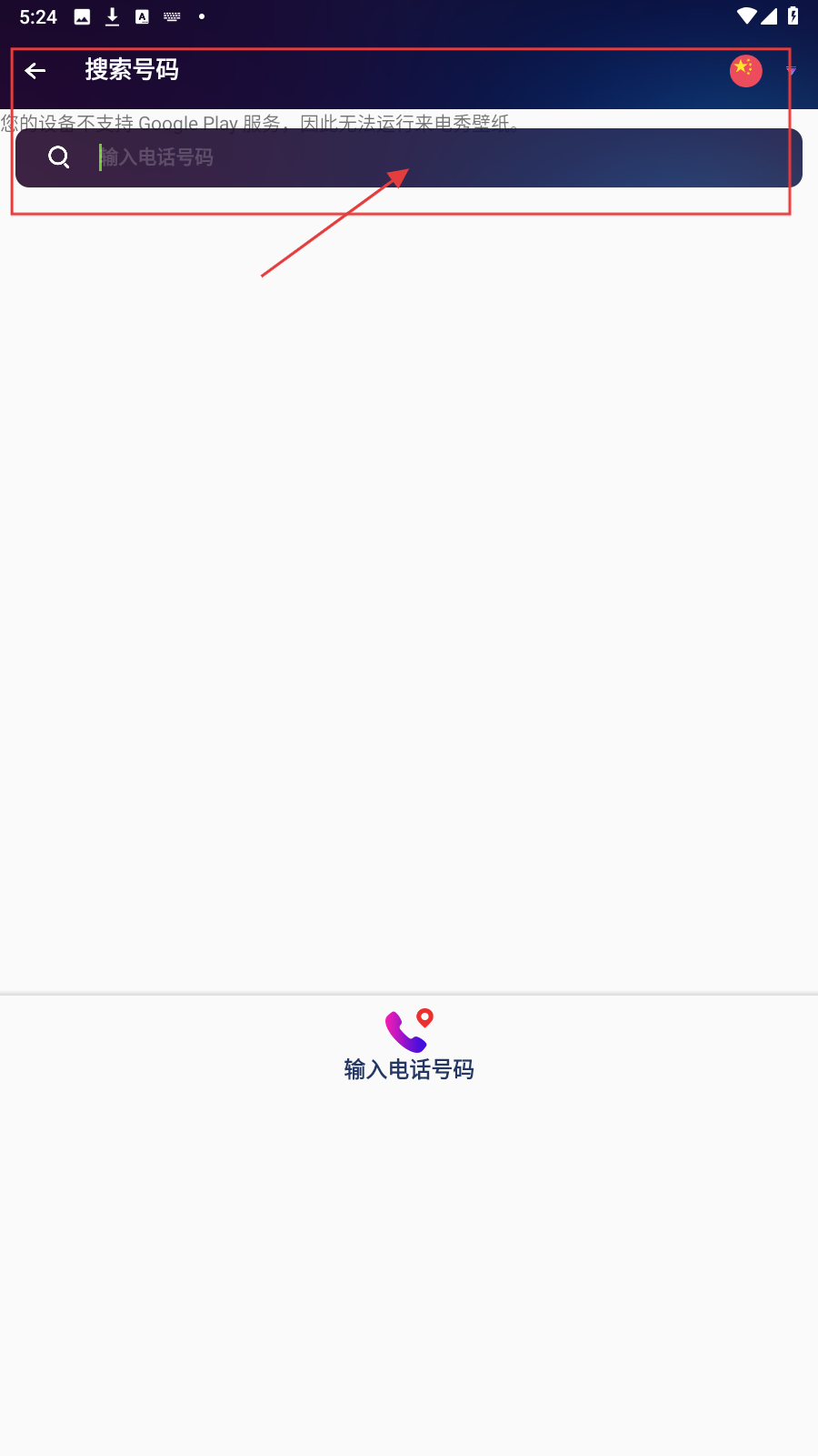 4、在【搜索号码】页,输入号码查信息;若设备不支持GooglePlay服务,部分功能受限。