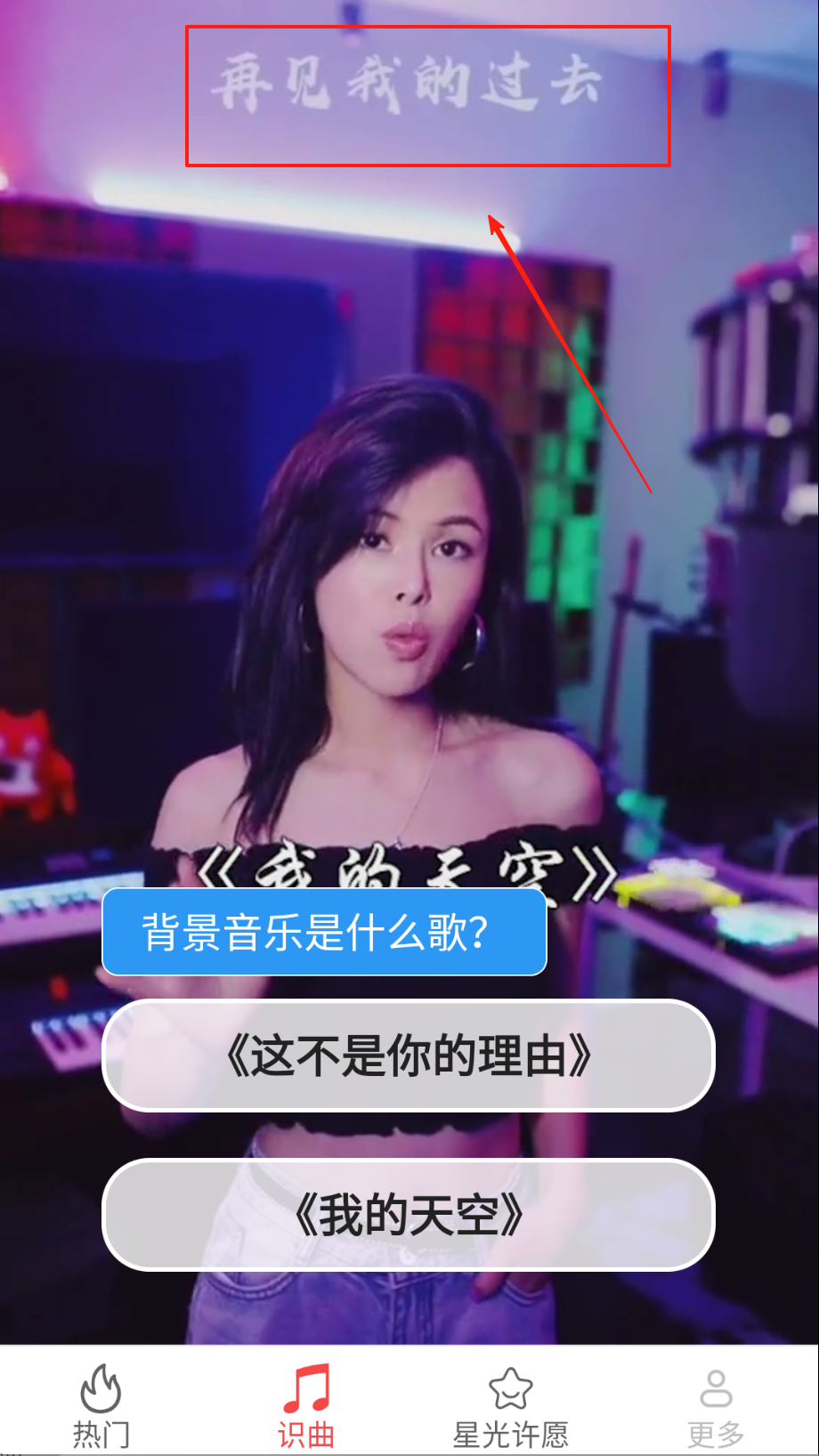 3、识曲页开启音乐识别,录制环境音频,可以匹配相似歌曲,查看完整信息呀。