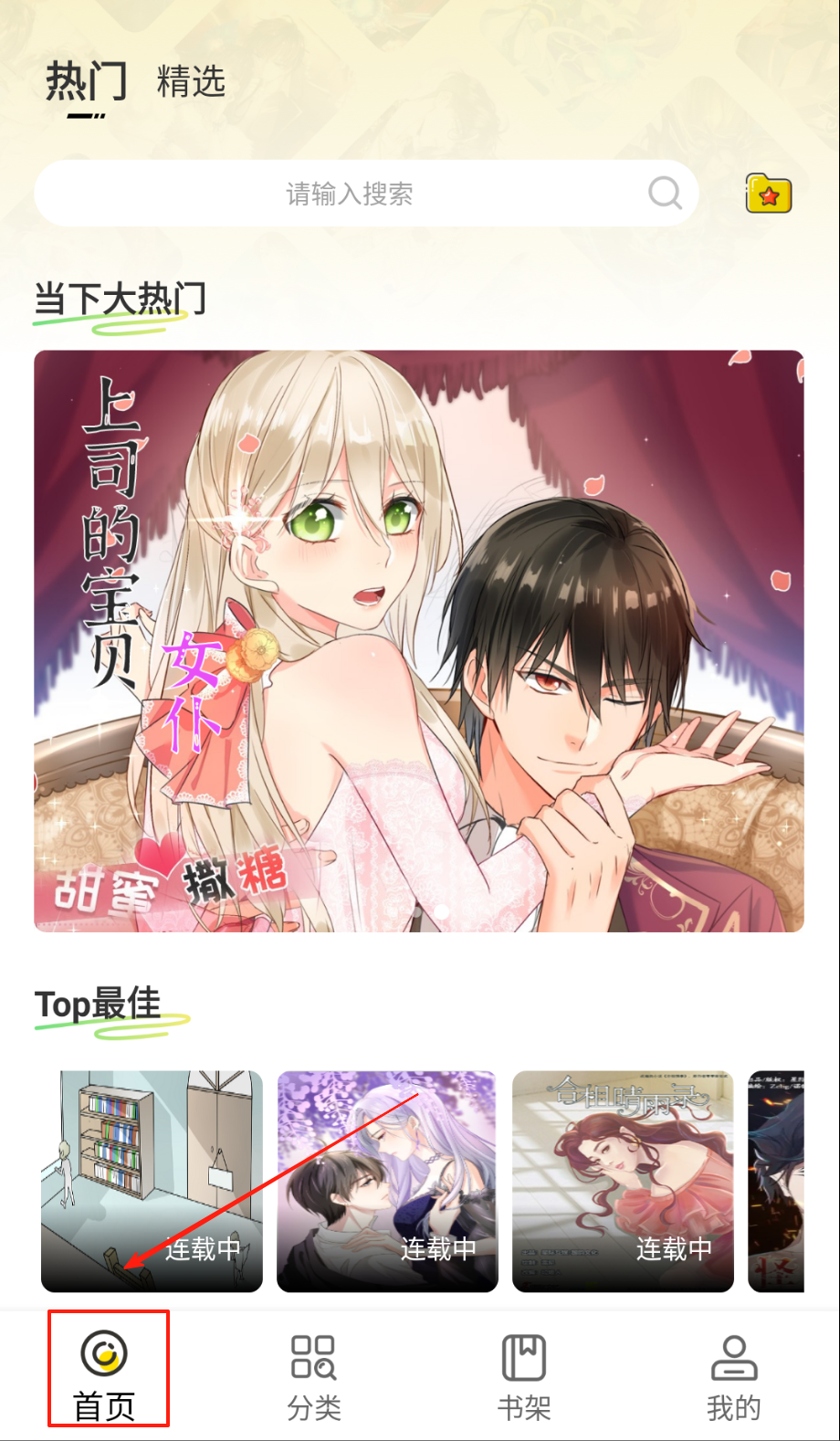 1、首页点"热门榜单"查看实时排行,红点标注新上架作品,收藏连载漫画设置更新提醒,夜间模式护眼认证哦。