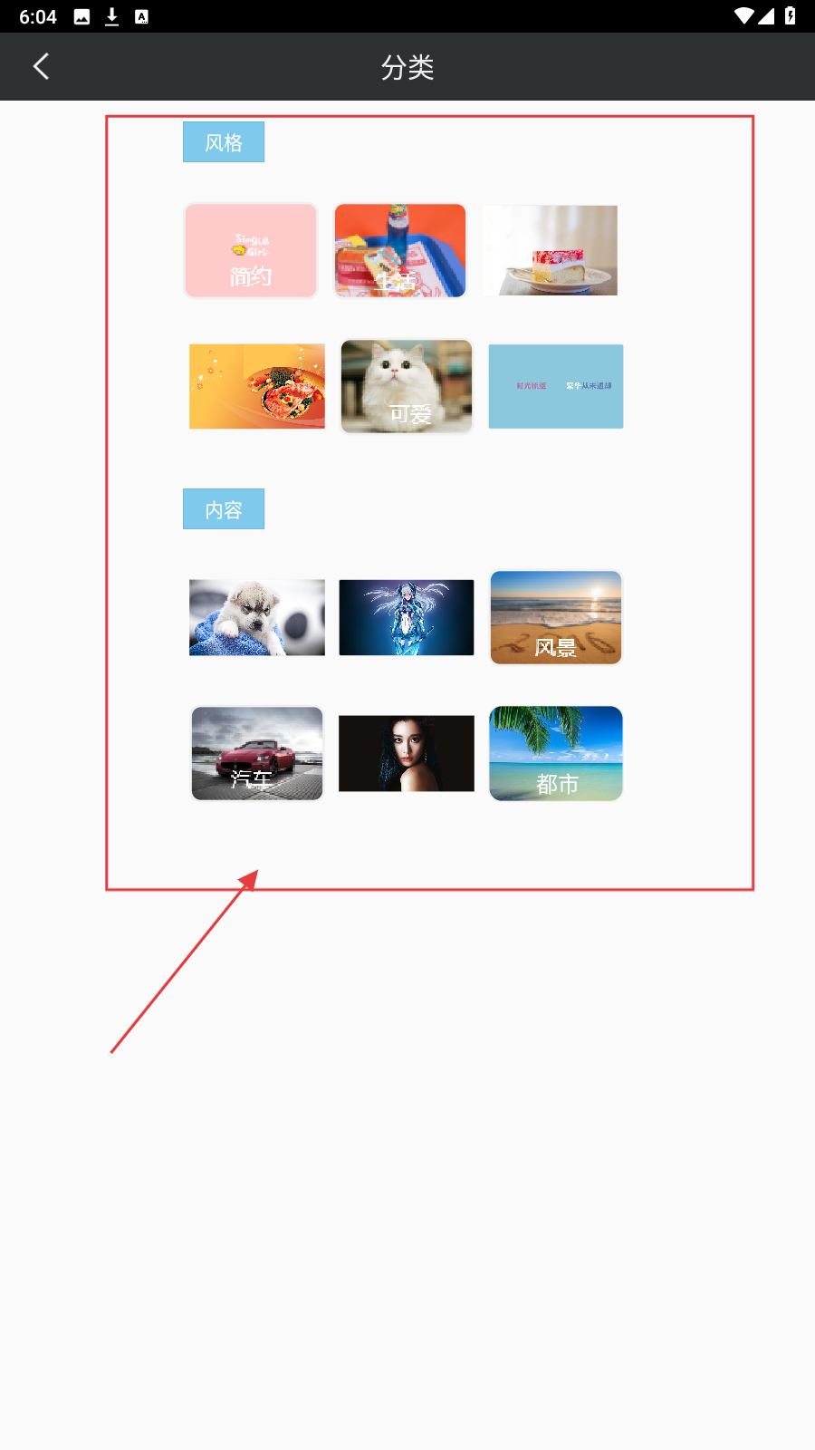 2、进入【分类】页面,可按【风格】或【内容】筛选图片,精准定位所需类型。