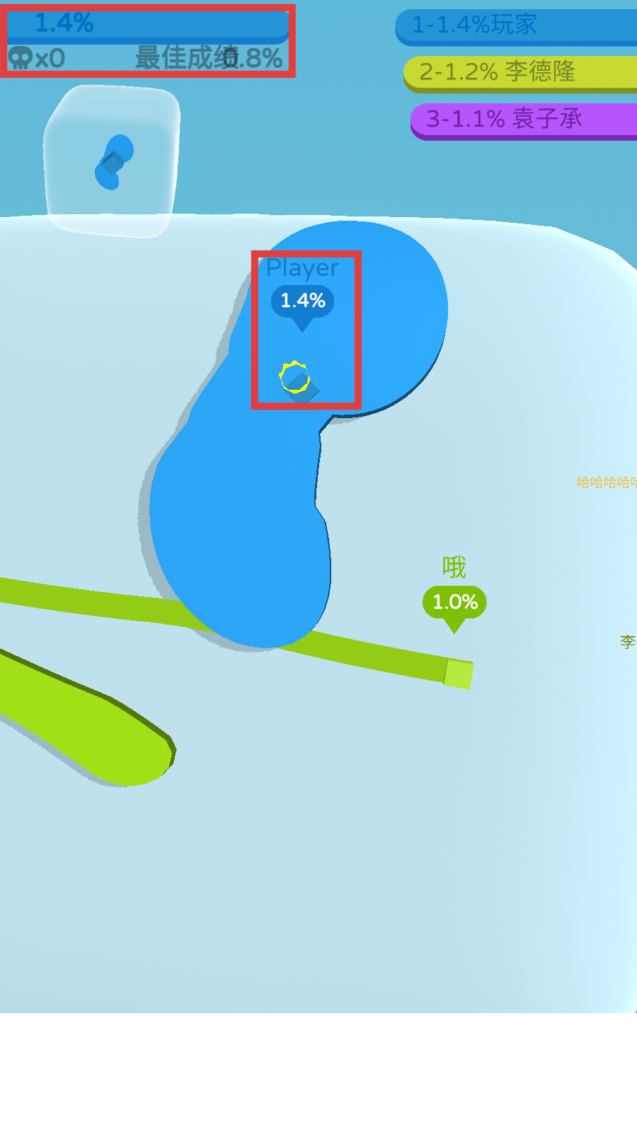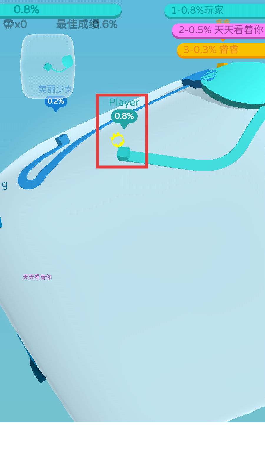 2、通过手指在屏幕的虚拟方向键,控制小方块进行滑行,占领更大的地盘为重要目标。