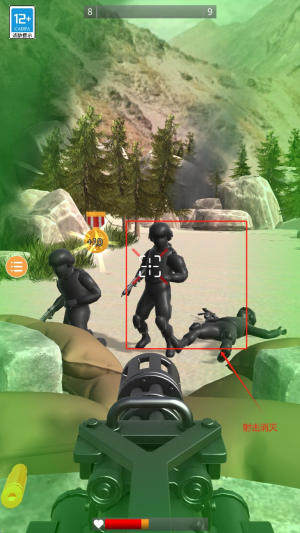 3、向前射击推进:操控队伍不断向前射击,清理沿途的敌人,利用人数优势突破敌方防线,向领地前进。