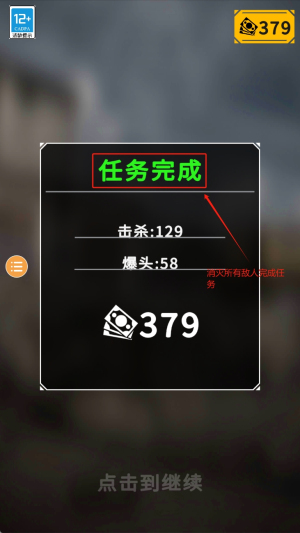 4、如何完成目标?消灭所有敌人并达成爆头数,任务完成后点击“继续”领取奖励。