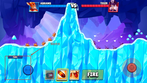 3、如何开火攻击?瞄准后点击FIRE按钮发射炮弹,注意剩余FUEL条。