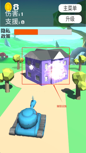 4、如何升级武器?在主菜单点击“升级”按钮,提高伤害数值后继续战斗。