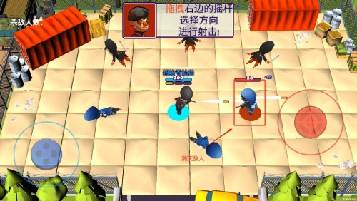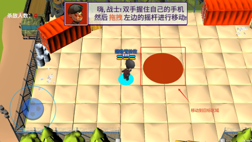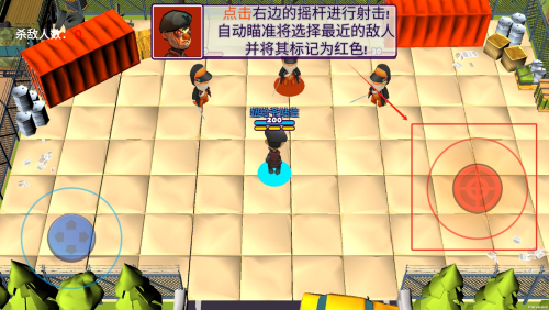 2、熟悉操作方式:练习拖拽左边摇杆移动,掌握走位技巧,点击右边按钮发射子弹,熟练攻击节奏,避免浪费弹药。