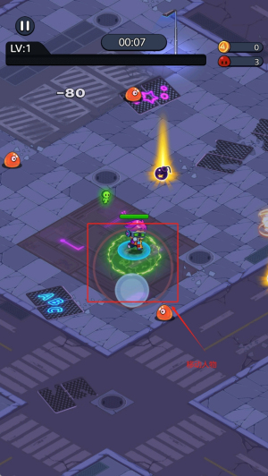 2、如何移动战斗?倒计时00:07内,滑动屏幕控制人物躲避敌人。