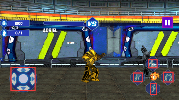 3、利用左下角方向键移动,右侧技能键释放技能【踢腿】【轻击】【重击】【防御】,将敌人血条耗光,获得胜利。