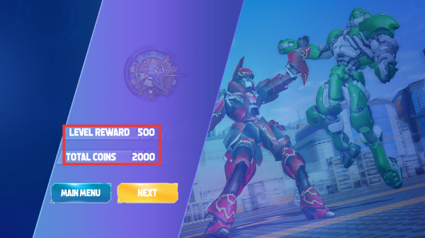 4、战胜敌人后,获取【LEVELREWARD500】奖励,累计金币,可点击【NEXT】进入下一关。