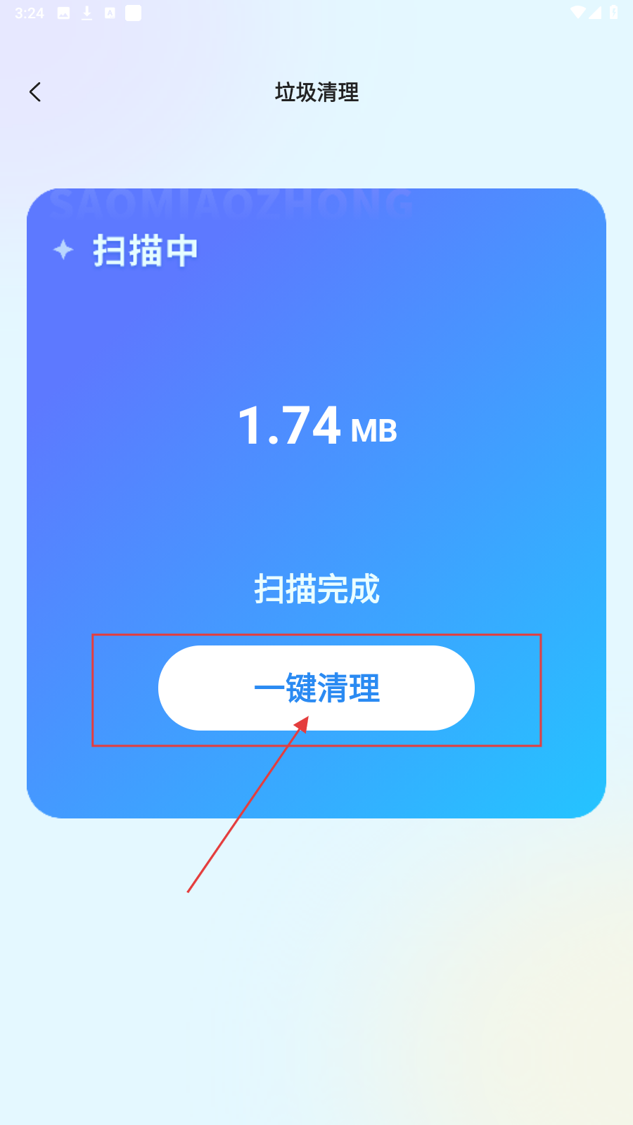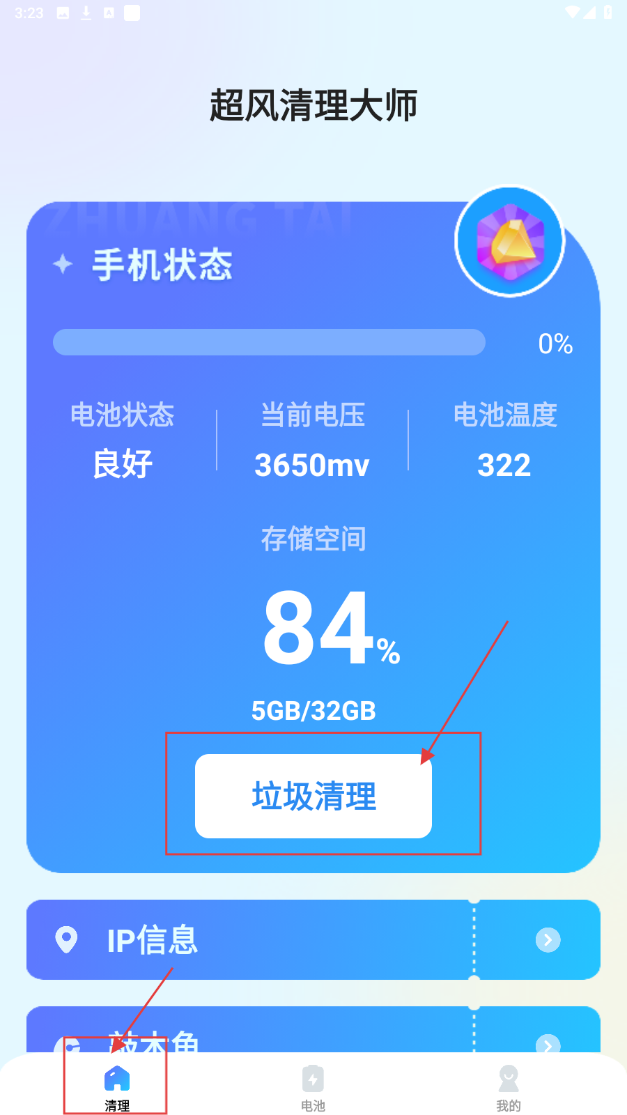 1、在【超风清理大师】首页,点击【垃圾清理】,可清理垃圾文件,释放手机空间。