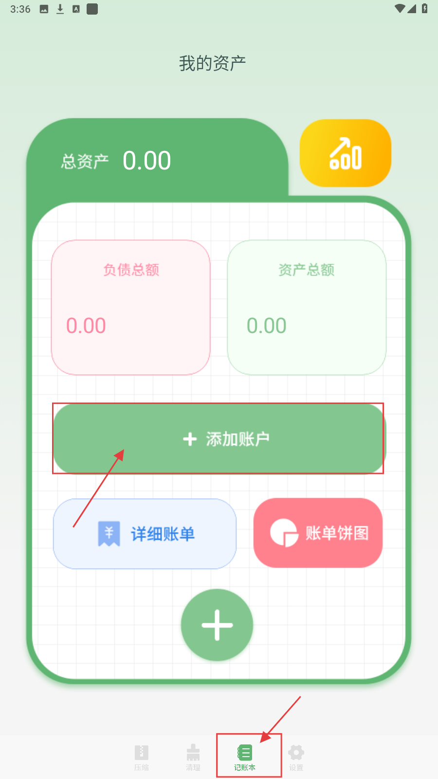 3、在【我的资产】页面,点击【+添加账户】,可添加新的账户。